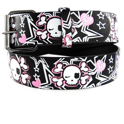 Buy Now! GENUINE LEATHER PINK SKULL SNAP ON BELT WITH A DETACHABLE BUCKLE GOOD FOR ANY BUCKLES